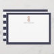 Our chic personalized stationery flat cards feature a midnight blue border with a faux rose gold foil pineapple illustration. Personalize with your name, business name or choice of custom text beneath, in modern lettering. Cards reverse to wide midnight blue and white stripes for a preppy chic look.