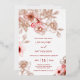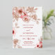 This elegant floral wedding invitation features a real rose gold foil line art flowers and pink cherry blossoms on a white background.