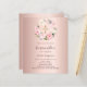 A rose gold gradient background, decorated with watercolored pink and white flowers in a wreath and a golden cross. Personalize and add a name and details.