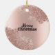 Rose Gold Pink Glitter Dripping Custom Christmas Ceramic Ornament