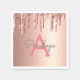Rose Gold Pink Glitter Dripping Glam With Monogram Napkin