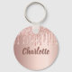 Rose gold pink glitter drips monogram luxury keychain