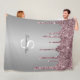 Rose Gold Pink Glitter Drips Silver Monogram Name Fleece Blanket