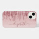 Custom elegant and girly iPhone case featuring dripping pink rose gold faux glitter on an ombre rose gold background. Personalize with your name in a stylish trendy rose gold script with swashes.