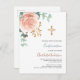 Rose gold pink greenery gold cross confirmation invitation postcard