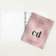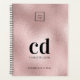 A rose gold, pink background and black text. Personalize and add your logo, monogram initials, name and a title year (any year). Your logo both on the front and the back. Space for your website address on the back.