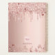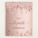 A rose gold background with rose gold and pink drips, paint drip look and stars. Template for a year. Personalize and add a name and a title. The name is written in dark rose gold with a large modern hand lettered style script. Perfect for school, work or organizing your personal/family life. To keep the swashes only delete the sample name, leave the spaces or emoji's in front and after the name