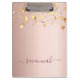 Girly and glamourous. A rose gold, pink background with faux gold stars. Personalize and add a name. The name is written with a modern and trendy hand lettered style script with swashes. Dark rose gold coloured letters.