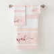 Rose gold pink white stripes monogram name bath towel set