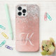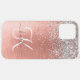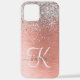 Easily personalize this trendy chic phone case design featuring pretty silver sparkling glitter on a rose gold brushed metallic background.
