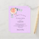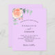 A violet, lilac coloured background. Decorated with a rose gold and blush pink floral, rose flower and green watercolored eucalyptus leaves, sprigs, greenery and faux gold sprigs. Personalize and add your names and wedding details.
