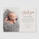 Cette photo moderne de remerciement note comprend un script manuscrit en or rose, un message personnel et une photo verticale sur le devant. Le dos est un aimant.