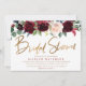 celebrate the bride-to-be with this metallic rose gold bridal shower script with watercolor burgundy navy floral detail. You can personalize this design with your choice of wording, text, paper size and type etc..