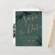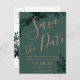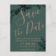 Rose gold script green leaf greenery save the date Wedding Invitation Collection. Send your save the date card with this elegant faux rose gold typography with watercolor green leaf foliage on grey background, perfect for chic style wedding