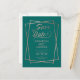 Modern faux rose gold script geometric wedding save the date with swirls typography and a minimal faux rose gold stripe geometric frame, the emerald green colour background is fully customizable.