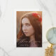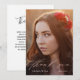 This graduation thank you card features modern calligraphy and a full photo of the new graduate. On the front, a rose gold overlay includes the words "thank you" written in pretty script lettering; the graduate's name and graduation year are written in white below. The typography design overlays a full vertical photo of the graduate. On the back, you can write a custom message to recipients, or delete the template text to create a blank area for a handwritten note.