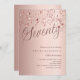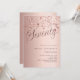 A modern, stylish invitation for a 70th birthday party. Rose gold gradient background and the word Seventy written with elegant large script letters in dark rose gold. Decorated with rose gold coloured stars. Personalize and add a name and party details.
