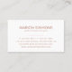 Chic carte de visite moderne avec signature or rose et nom de votre entreprise. Ajoutez vos coordonnées complètes à l'arrière. Un choix unique et élégant pour toute entreprise. Ajoutez votre libellé personnalisé à cette conception à l'aide des cases "Modifier ce modèle de conception" situées à droite de l'élément, ou cliquez sur le bouton bleu "Customiser" pour arranger le texte, modifier les polices et les couleurs et ajouter des informations ou des images supplémentaires à cette conception. Si vous avez besoin d'éléments de coordination (cartes de remerciements, etc.), veuillez me contacter pour une commande personnalisée. ****Pour une commande personnalisée, ne placez pas cette marchandise dans votre panier. Au lieu de cela, envoyez-moi votre demande par courriel à lauraliseprovencher@gmail.com Un lien vers votre marchandise vous sera envoyé par courriel une fois que l'article sera disponible. Vous pouvez utiliser ce lien pour passer votre commande. Veuillez compter jusqu'à 48 heures.