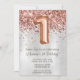Rose Gold Silver 1st Birthday Party Invitation