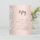 For an elegant 50th (or any age) birthday party. A rose gold background. Decorated with confetti. Personalize and add a name and party details. The name is written with a hand lettered style script.