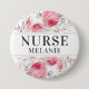 Floral Blush Pink and Silver Glitter Nurse Name Button Badge - Customize the button badge templates with your name and profession.
