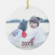 Rose Gold Snowflake 2 Sided Photo Christmas Ceramic Ornament