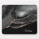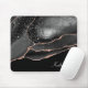 This elegant mouse pad features an exquisite abstract design in black and rose gold faux glitter. Tiny star confetti gives a glittery effect, with your name in silver against black at the bottom right. Classy!