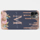 Monogram Pink Glitter Girly Glam Glitter iPhone 11 Pro - You love to sparkle, why shouldn't your iphone? This lovely, navy blue iPhone case features dripping rose gold glitter with blush and gold feminine florals. Add a personal touch by adding your name and initial. Case will be part of a collection.
