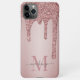 Girly Rose Gold Sparkle Glitter Drips Monogram Cell Phone Case with fashion faux blush pink/rose gold glitter drips on a chic background with your custom monogram and name. You're dripping in luxury, so your phone should be, too! Please contact us at cedarandstring@gmail.com if you need assistance with the design or matching products.