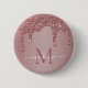Girly Rose Gold Sparkle Glitter Drips Monogram Button with fashion faux blush pink/rose gold glitter drips on a chic background with your custom monogram and name.Please contact us at cedarandstring@gmail.com if you need assistance with the design or matching products.