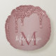 Rose Gold Sparkle Glitter Drips Monogram Baby Round Pillow