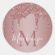 Rose Gold Sparkle Glitter Drips Monogram Classic Round Sticker