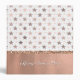 Chic Avery brand three ring binder done in graphics of a rose gold look, with stars, polka dots, and glitter. Personalize the white text, running across the bottom front, to read what you want. Great as a wedding planner, photo album, school, home, or office.