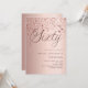 A modern, stylish invitation for a 60th birthday party. Rose gold gradient background and the word Fifty written with elegant large script letters in dark rose gold. Rose gold coloured stars. Personalize and add a name and party details.