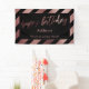 The background of this bold design is covered in bold black with faux-metallic rose gold stripes partially-masked with a rose gold bordered rectangle that sets off the contents. Using a modern brushed handwriting graphic overlay that says "happy birthday" there are two template fields you can use to personalize the message. // 100 //