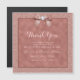 Elegant, sparkly, romantic Wedding Thank you magnetic card with a classy romantic rose gold bow with a rhinestone jewel diamond on a beautiful rose gold colored frame encasing your event details, and a pretty background of shiny rose gold glitter. This example is for a wedding reception, but is suitable for any event. All text is fully customizable to meet your requirements. If you need help to customize your product or would like matching products please contact me through my store and i will be very happy to help you.