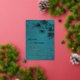 This elegant wedding invitation features rose gold line art floral cherry blossoms on a shimmering teal / turquoise background. Your photo on the backside.