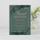 Rose gold typography Floral green leaf Sweet 16 Invitation