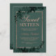 A modern, pretty chic and elegant rose gold typography Floral green sweet 16 birthday invitation with hand painted green watercolor leaf foliage. The green colour background is fully customizable