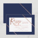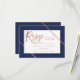 Rose gold typography stripe navy blue rsvp wedding card