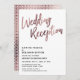 For the header of these bold cards, I've used a casual, modern, handwritten font to create a graphic typography overlay reading "Wedding Reception". This image was embellished with a smooth faux-metallic rose gold foil effect for a celebratory vibe. Fill in the template blanks with your details to personalize the design. All layers were left unlocked so you can also click to further customize and re-position text or even change sizes or fonts. The background was covered in a repeating, Moroccan-inspired, retro pattern that has been embellished with the same rose gold effect. Please do not hesitate to reach out for assistance with customization.