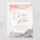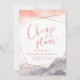 Modern Calligraphy "change of plans" and glam faux rose gold glitter geometric lines on pastel blush and dusty blue watercolor background, modern and chic, inform your wedding guests the updated information with this wedding postponement cards.
