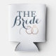 Class up that can with a fully personalized "The Bride" white can cooler featuring interlocked rose gold wedding rings on one side and your bachelorette party details on the back and enjoy your bachelorette celebration in full on classy bride style.