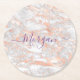 Rose Gold & White Marble, Purple Script Name Round Paper Coaster