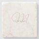 Rose Gold White Marble Stone Initial Coaster