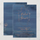 Elegant rose gold floral wreath design bridal shower invitation with navy blue watercolor background. Personalize text font style, colour, and size.