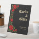 Add a touch of gothic elegance to your wedding decor with this 8" x 10" plastic pedestal sign, designed to perfectly match the Rose Gothic Wedding Invitation suite. Featuring dramatic red roses and vintage-style typography on a deep black background, this sign beautifully directs guests to the cards and gifts table.