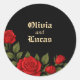 Add a dramatic finishing touch to your wedding stationery or favours with this Rose Gothic Wedding classic round sticker. Featuring deep red roses against a bold black background with elegant text, it’s perfect for sealing envelopes, decorating favour bags, or adding a cohesive detail to your gothic wedding theme. Stylish, versatile, and easy to use, it brings a hint of romance and mystery to every piece.