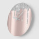 Rose Grey Metal Spark Glitter Drip Blush Glitter Large Clock