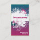 Favorisez vos affaires de maquilleur avec ce carte de visite unique à la mode grunge rose, pourpre, turquoise audacieux et lumineux de bleu, et blanc floral et de remous de vigne de peinture d'éclaboussure de maquilleur. Ce carte de visite grunge audacieux est également un grand match pour des techniciens d'ongle, des salons de coiffure, la mode, des magasins de bijoux, des chanteurs, des bandes, des artistes exécutants, des producteurs record, des planificateurs de partie, des organisateurs, des planificateurs de garde-robe, des magazines de style, des directeurs, des magasins de détail, des concepteurs de sac à main, des artistes de tatouage, des perforateurs, et plus. Conceptions de ©2011 Pam.
